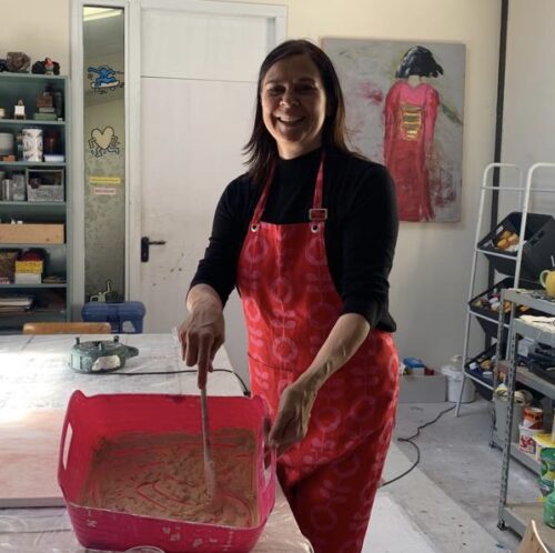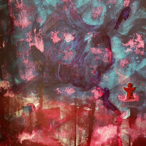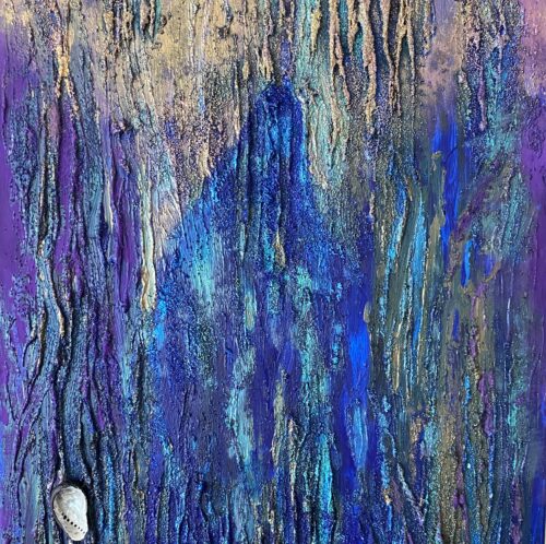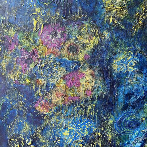 BlueWorkshop intuïtief schilderen met kunstenares Ilse Valkenburg. Dus gewoon doen wat je invalt. Niet nadenken. Dit is het resultaat.